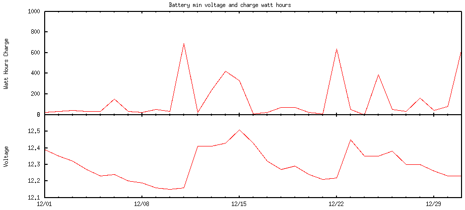 This last chart shows the battery maximum voltage (top) and minimum voltage